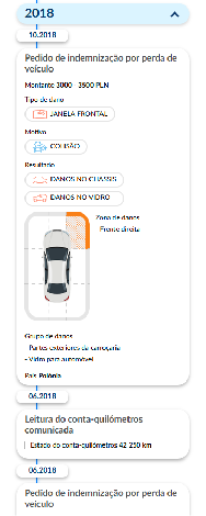 O relatório permite verificar os títulos que foram atribuídos ao veículo, incluindo a quilometragem registada, bem como os registos do título de propriedade. Pode também ter acesso a informações relativas a perdas totais comunicadas para o veículo, relatórios de oficinas de desmantelamento de automóveis, histórico de acidentes e casos comunicados de roubo do veículo. Há mais uma adição interessante ao relatório: oferecemos acesso às ofertas de venda arquivadas do veículo nos EUA.